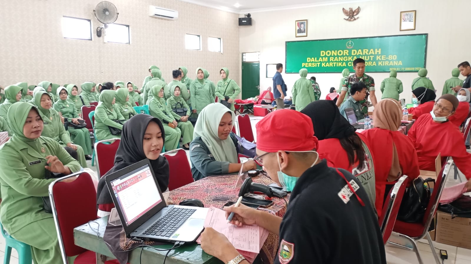 Boyolali – Dalam rangka menyambut Hari Ulang Tahun (HUT) ke-80 Persit Kartika Chandra Kirana, Persit KCK Cabang XLV Dim 0724/Boyolali menggelar kegiatan bakti sosial donor darah yang berlangsung di Aula Makodim 0724/Boyolali, Jalan Padanaran, Desa Tegalmulyo, Kecamatan Mojosongo, Kabupaten Boyolali, Kamis (22/01/2026).
