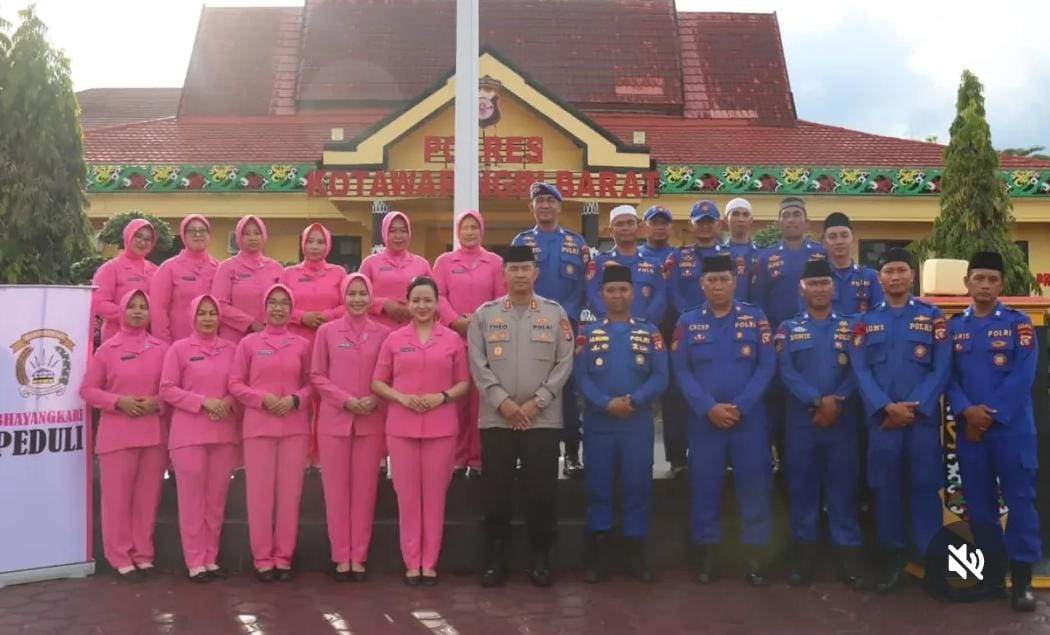 Kegiatan yang dilaksanakan di depan Markas Komando (Mako) Polres Kobar, Jalan P. Diponegoro, Kelurahan Sidorejo, Kecamatan Arut Selatan ini dipimpin langsung oleh Kapolres Kobar, AKBP Theodorus Priyo Santosa, S.I.K., yang turut didampingi Ketua Bhayangkari Cabang Kobar, Ny. Scila Theo.