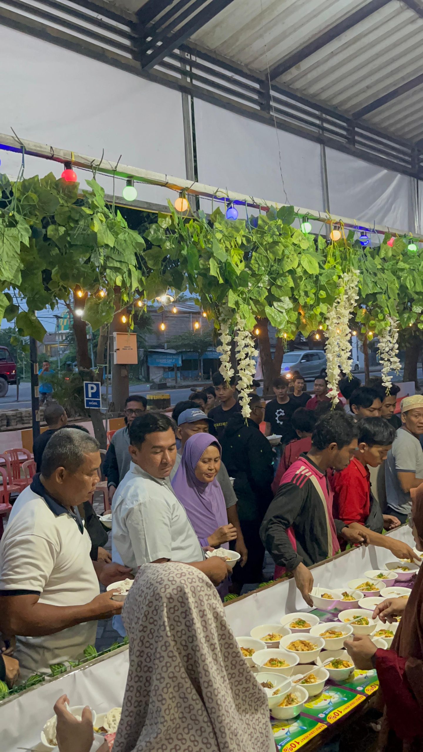“Karena itu kami menyediakan makanan berbuka di lokasi ini, agar pengguna jalan tidak perlu terburu-buru. Kami juga menyiapkan tempat wudhu dan musholla sederhana sehingga mereka bisa beristirahat dan beribadah dengan tenang,” jelasnya.