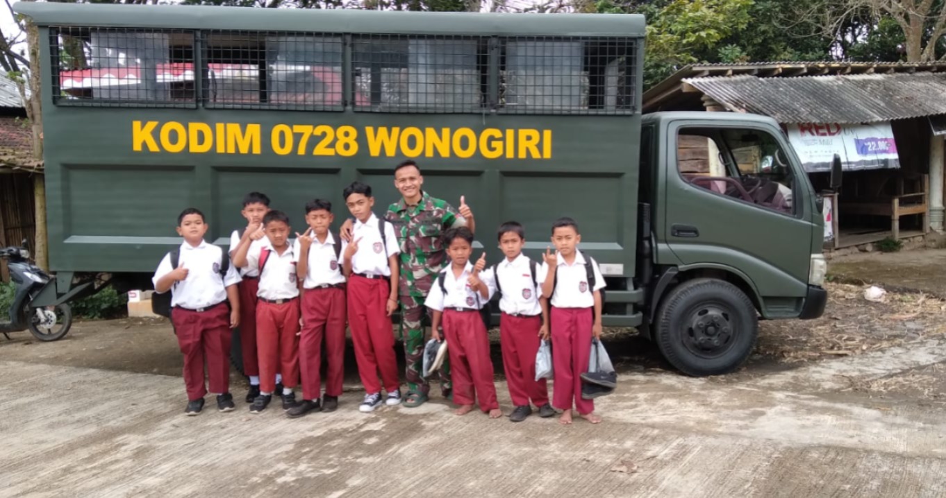 Seperti yang dilakukan oleh Praka Dryatmoko, salah satu anggota Satgas TMMD 127 Kodim 0728/Wonogiri. Disela-sela tugas TMMD sebagai bentuk rasa simpati terhadap warga, personil Satgas TMMD Reguler ke-127 terus mendekati anak-anak.