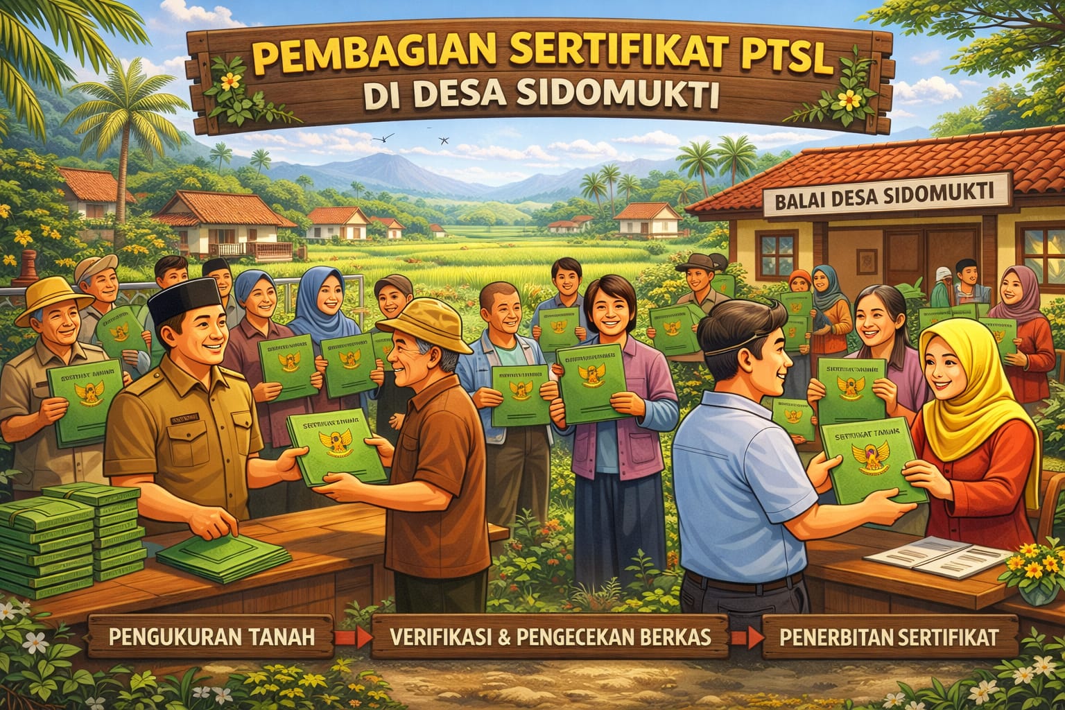 BOJONEGORO – Pelaksanaan Program Pendaftaran Tanah Sistematis Lengkap (PTSL) di Desa Sidomukti, Kecamatan Kepohbaru, Kabupaten Bojonegoro, berjalan tertib dan sesuai dengan prosedur yang berlaku. Hingga saat ini, ratusan bidang tanah milik warga telah diajukan untuk diproses melalui program tersebut.