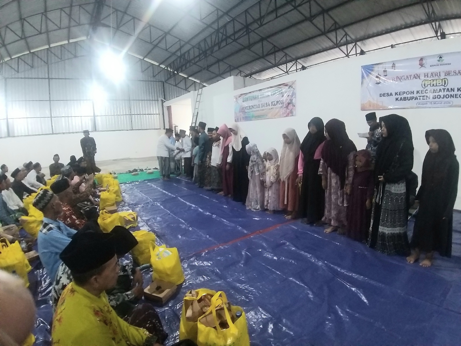 Dalam kesempatan tersebut, pemerintah desa bersama masyarakat menyerahkan santunan kepada sejumlah anak yatim yang ada di Desa Kepoh.