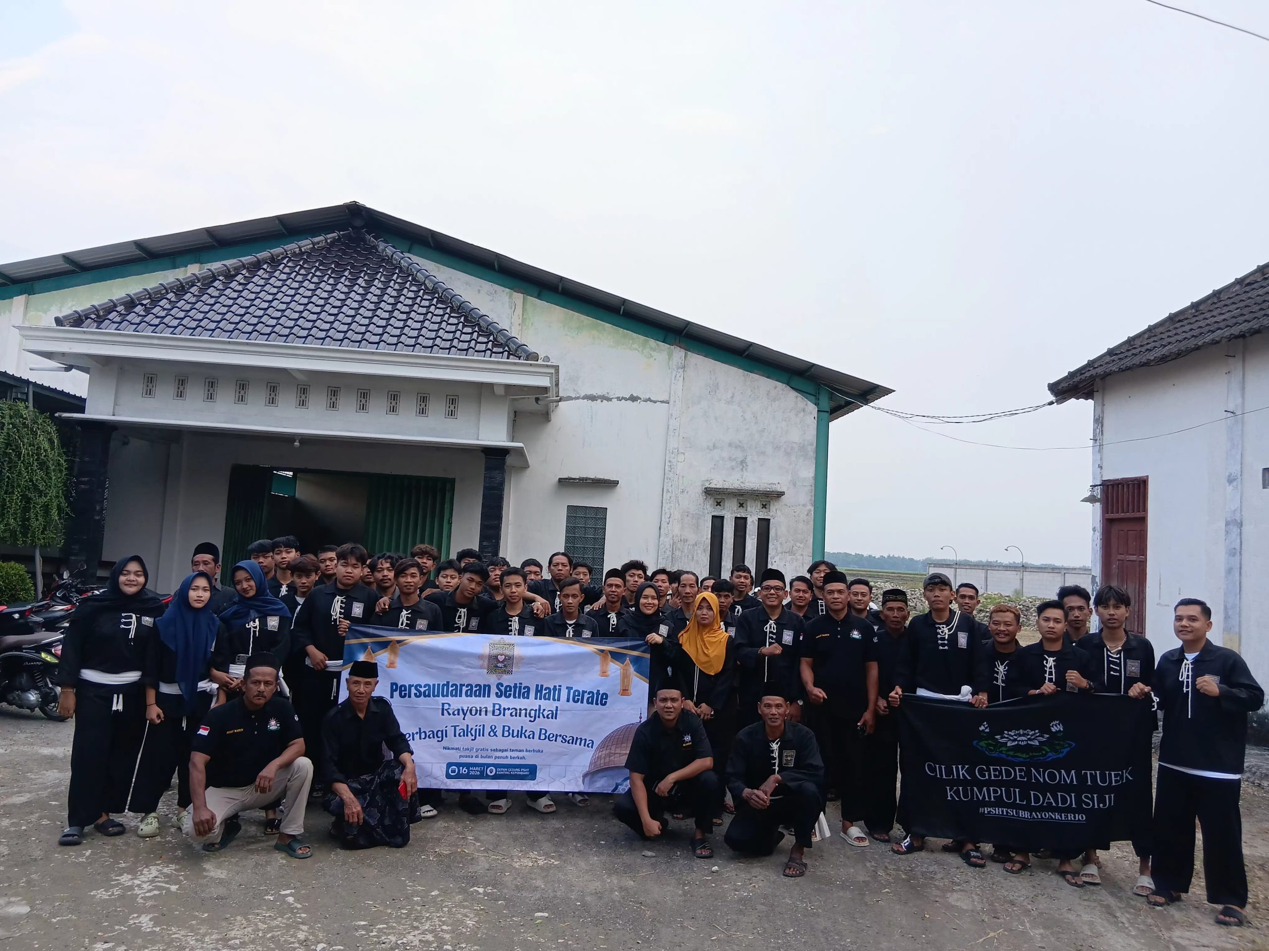 Kegiatan yang berlangsung menjelang waktu berbuka puasa ini dilaksanakan di depan Gedung Seketariat PSHT Ranting Kepohabru di Desa Brangkal.Senin (16/3/2026)